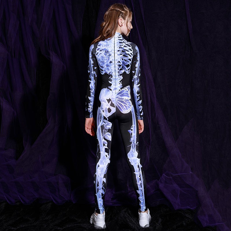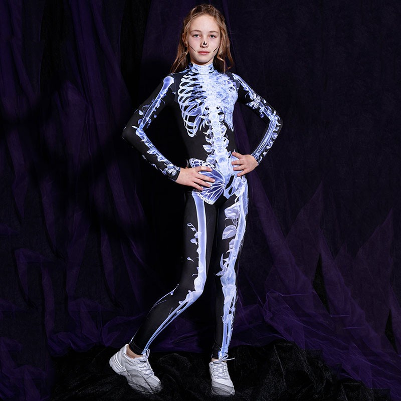 Make Halloween a fun and spooky experience for your child with this creepy skeleton costume covered in bones. The soft and snug construction, long sleeves and hidden back zip make it perfect for roaming graveyards and scaring the dead. Your child playing dead will be a sight to behold and will be sure to entertain you.