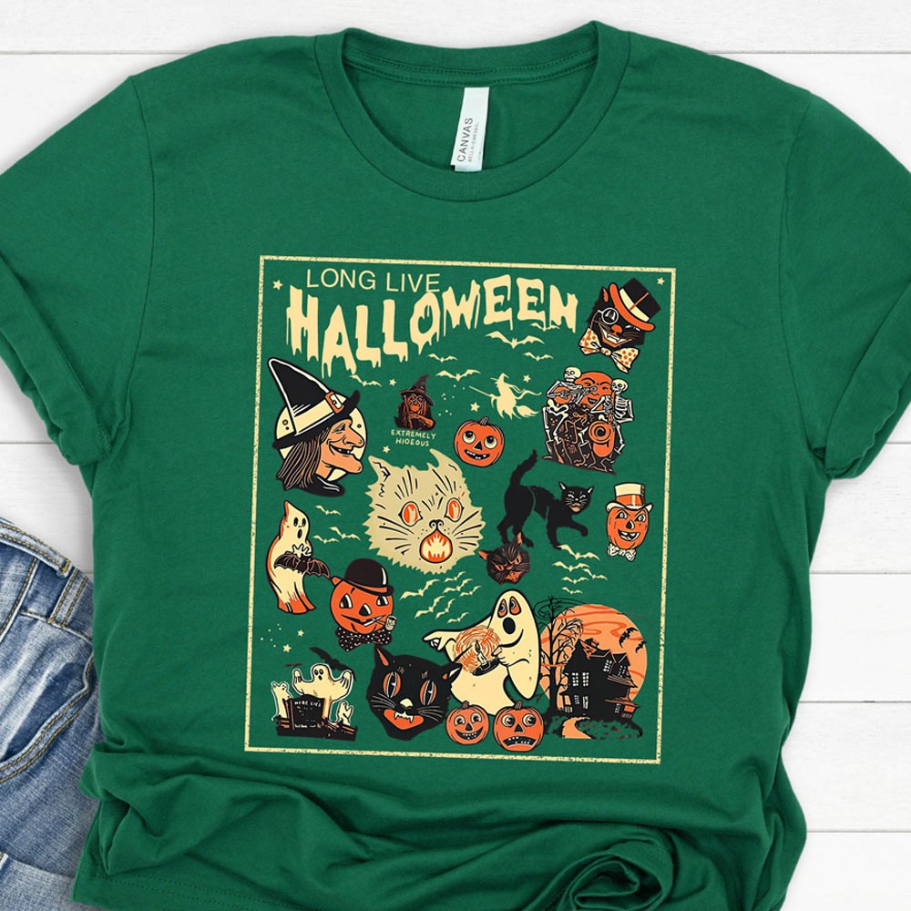 Celebrate the spooky season with the "Retro Long Live Halloween Black Cat Shirt"! This shirt features a vintage-inspired design with a mysterious black cat, a classic symbol of Halloween. The retro style, combined with bold lettering and distressed graphics, gives it a timeless look that is perfect for any Halloween fan. Made from soft, comfortable fabric, it’s ideal for everyday wear, Halloween parties, or any autumn adventure. Show your love for the season with this stylish shirt that pays tribute to the magic and mystery of Halloween!